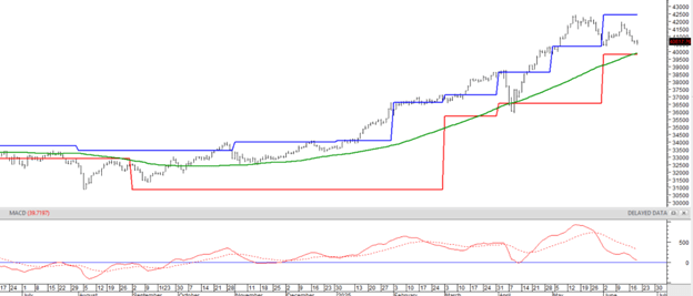 The index is in a parabolic uptrend, with minimal pullbacks.